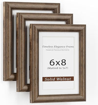 6x8 Picture Frame, USA-Sourced Walnut Wood Frame with Tempered Glass, Display 5x7 with Mat or 6x8 Without Mat, 6 by 8 Photo Frame for Wall & Tabletop Display, Handcrafted Wood Frame, 3 Pack