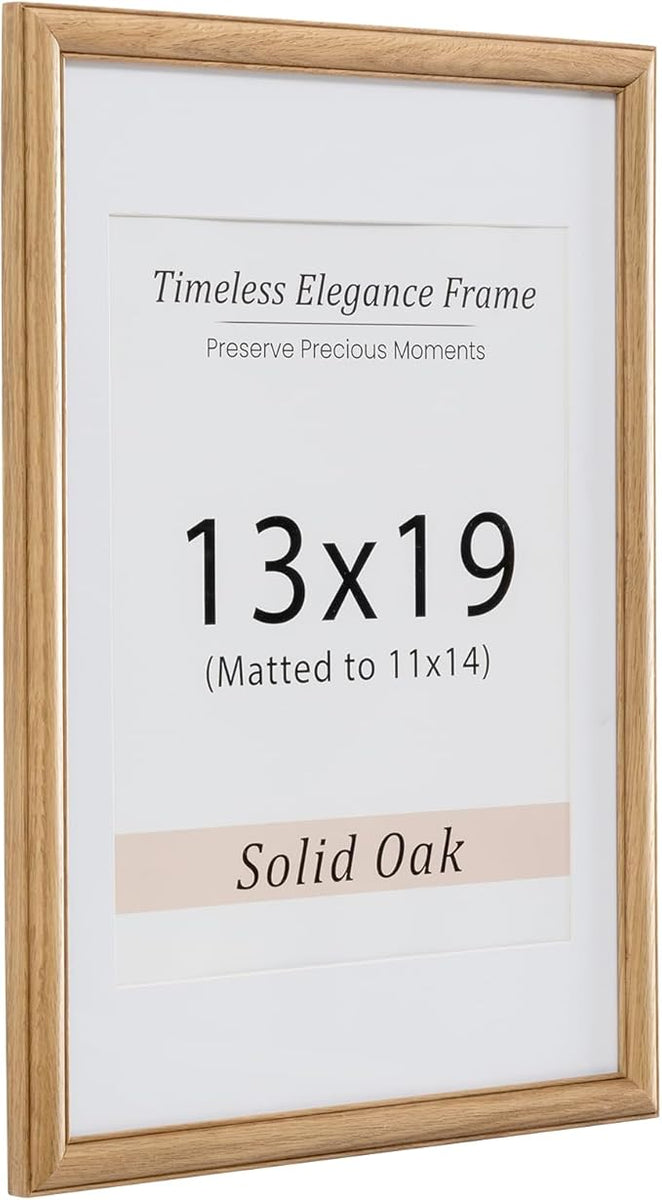 13x19 Picture Frame, Natural Solid Wooden Picture Frames with Tempered Glass, Display 11x14 with Mat or 13x19 Without, Vertical or Horizontal Wall Hanging Photo Frame, Natural Oak Color, 1 Pack