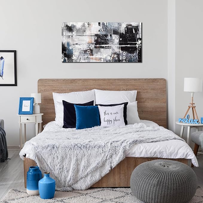 Abstract Art Wall Decor Office - Black And White Pictures Wall Art for Living Room - Modern Prints Wall Art Bedroom Size 20" x 40"