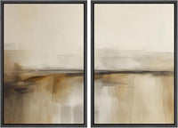 MUDECOR Framed Canvas Print Wall Art Set Abstract Beige and Brown Gradient Neutral Minimalist Landscape Illustrations Modern Art Decorative Calm for Living Room, Bedroom, Office - 16"x24"x2 Black
