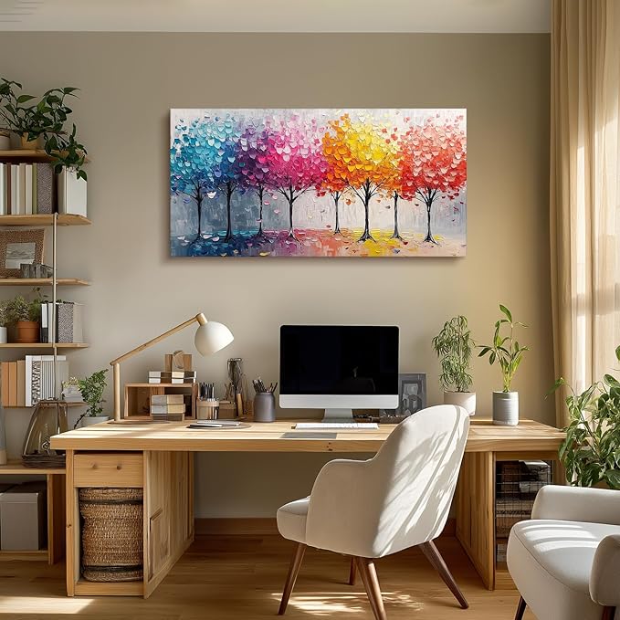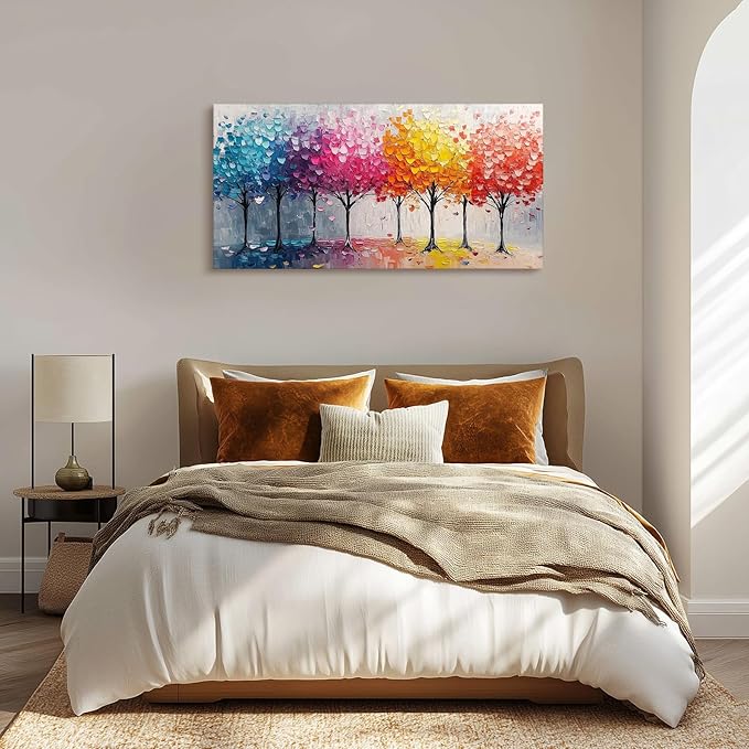 crmotu Colorful Trees Wall Art, Abstract Forest Large Wall Decor, Nature Landscape Canvas Paintings, Modern Trendy Pictures for Living Room Bedroom Bathroom Office, Home Decoration Prints 24x48 Inch