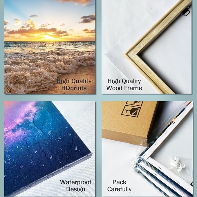 Large Beach Wall Art for Living Room Coastal Canvas Painting Decor - Sunrise Ocean Picture Nature Seascape Artwork Poster Print for Office Bedroom Decoration 20"x40"