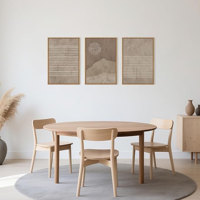 Aryroi Large Mid Century Tan and Beige Framed Canvas Wall Art,Neutral Lines Dots Wall Decor,Abstract Sunset and Mountain Artwork,Boho Textured Shapes Art Print for Living Room,Bedroom,Office-24"x36"x3