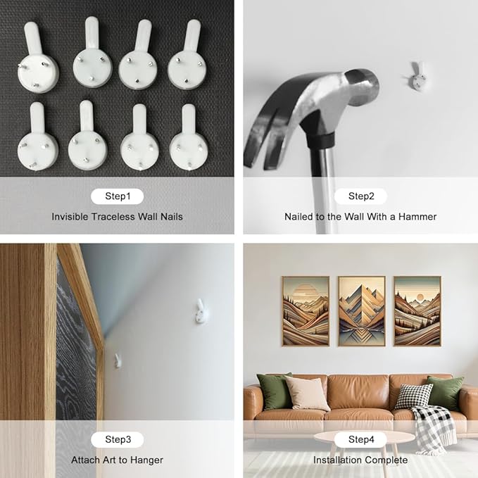Large Vintage Woodcut Style Mountain Framed Canvas Wall Art,Mid Century Woodland Wall Decor,Boho Sunrise Forest Artwork,Modern Neutral Nature Art Print for Living Room,Bedroom,Office-24 x36 x3