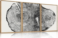 Large Vintage Tree Ring Framed Canvas Wall Art,Abstract Wood Stump Wall Decor,Neutral Annual Ring Artwork,Modern Black and White Art Print for Living Room,Bedroom,Office- 24"x36"x3