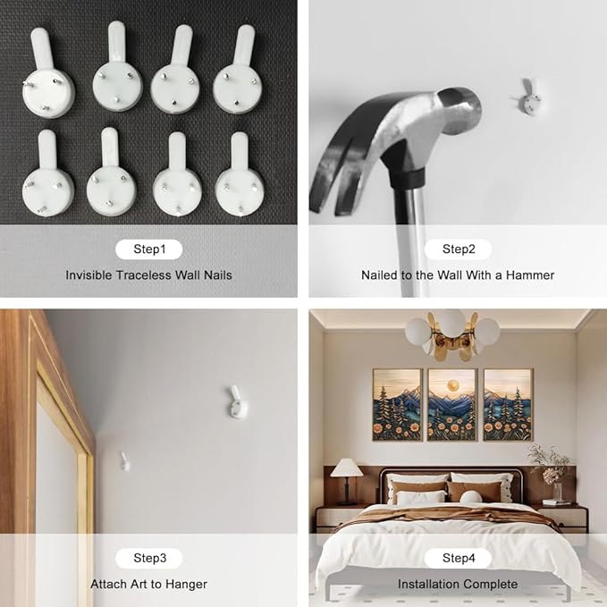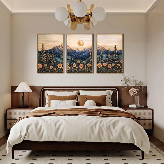Large Natural Floral Mountain Framed Canvas Wall Art,Vintage Forest Wall Decor,Boho Abstract Moonlight Landscape Artwork,Mid Century Scenery Art Print for Living Room,Bedroom,Office- 24"x36"x3