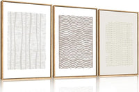 Large Abstract White and Beige Framed Canvas Wall Art,Geometric Dot and Line Wall Decor,Modern Wave Lines Artwork,Neutral Minimalist Shapes Art Print for Living Room,Bedroom,Office-24 x36 x3