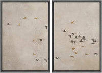 SIGNWIN Framed Canvas Print Wall Art Set Flying Birds Silhouette Minimalist Beige Illustrations Modern Minimal Decorative for Living Room, Bedroom, Office - 24"x36"x2 Black