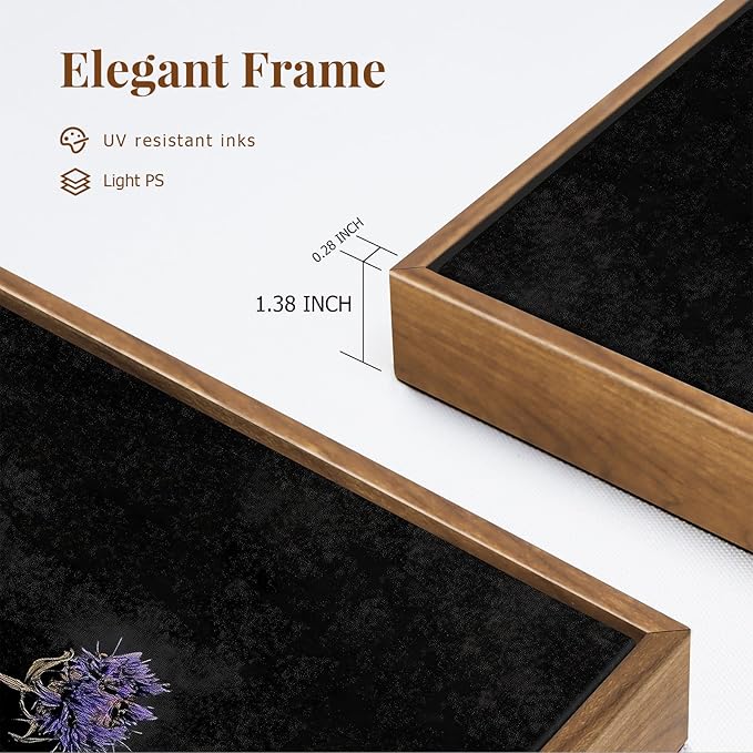SAFERRYHOME Moody Dark Floral Wall Art Set of 3 - Vintage Black Botanical Canvas Prints Framed Dried Wildflower Artwork, Modern Dark Academia Decor for Living Room, Bedroom & Office - 16x24 Inch Framed