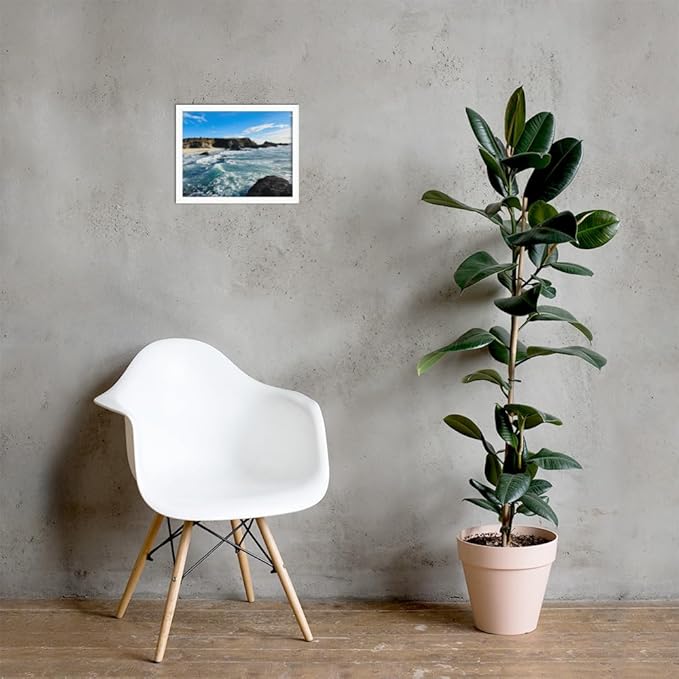 Bodega Bay Coastal Wall Art – Framed Ocean Photography Print – California Nature Landscape Poster – Seascape Decor for Living Room or Bedroom (11x14 inches) - Wooden Framed (White)
