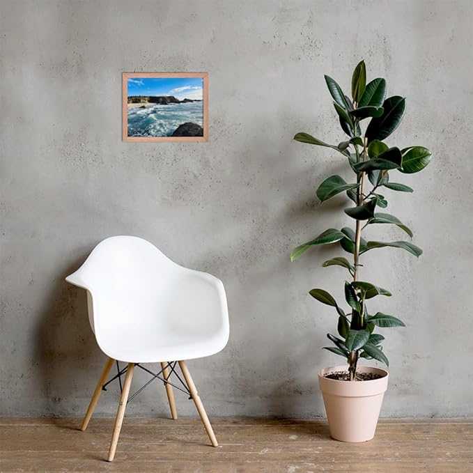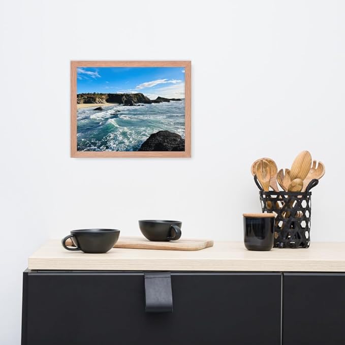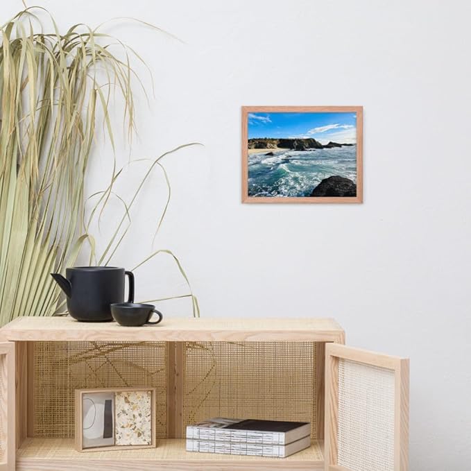 Bodega Bay Coastal Wall Art – Framed Ocean Photography Print – California Nature Landscape Poster – Seascape Decor for Living Room or Bedroom - (11x14 inches) - Wooden Framed (Red Oak)