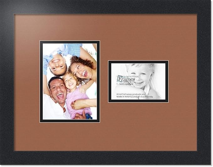 ArtToFrames Collage Photo Frame Double Mat with 1 - 3.5x5, 5x7 Openings and Satin Black Frame
