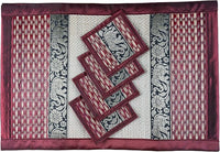 Hand-Woven Wicker Reed Placemats Coaster Set Eco-Friendly Alternative to Plastic Heat Resistant Thai Style Durable Easy to Clean for Dining Table Set of 4 (Large (Type2), Dark Red-Striped)