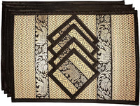 Hand-Woven Wicker Reed Placemats Coaster Set Eco-Friendly Alternative to Plastic Heat Resistant Thai Style Durable Easy to Clean for Dining Table Set of 4 (Medium, Black)
