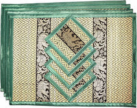 Hand-Woven Wicker Reed Placemats Coaster Set Eco-Friendly Alternative to Plastic Heat Resistant Thai Style Durable Easy to Clean for Dining Table Set of 4 (Medium, Teal Green)