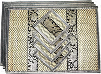 Hand-Woven Wicker Reed Placemats Coaster Set Alternative to Plastic Heat Resistant Thai Style Durable Easy to Clean for Dining Table Set of 4 (Medium, Grey)