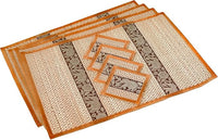 Hand-Woven Wicker Reed Placemats Coaster Set Eco-Friendly Alternative to Plastic Heat Resistant Thai Style Durable Easy to Clean for Dining Table Set of 4 (Large, Light Gold)