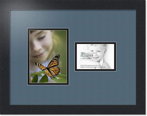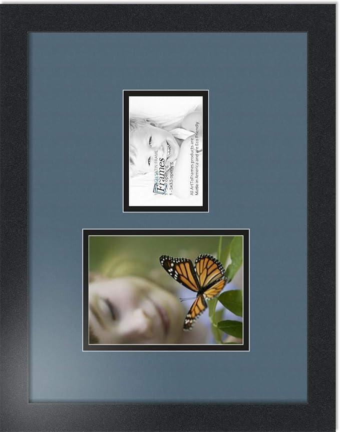 ArtToFrames Collage Photo Frame Double Mat with 1-3.5x5, 5x7 Openings with Satin Black Frame and Dutch Blue mat.