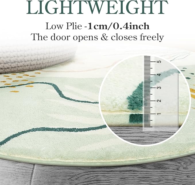 Lahome Green Botanical Print Small Throw Rugs Modern Abstract Non-Slip 3x5 Minimalist Art Area Rug Accent Distressed WashableFloor Carpet for Living Room Bedroom Entryway
