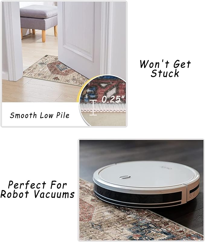 vivorug Runner Rug 2'x7' Vintage Washable Non-Slip Runners for Hallways Kitchen Entryway Laundry Room Carpet Hallway Runner Brown
