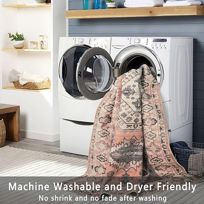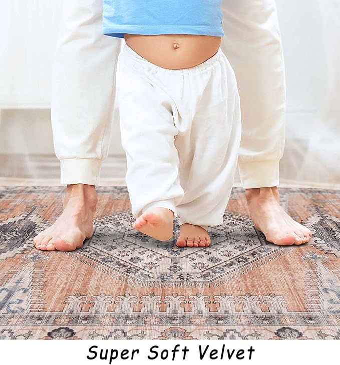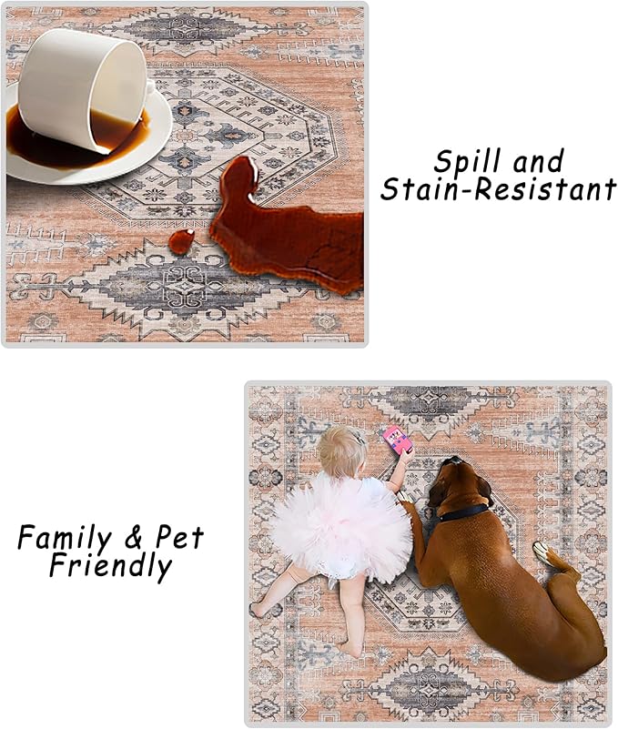 vivorug 6x9 Area Rug, Ultra-Soft Washable Rug for Living Room, Dinner Room, Bedroom, Non-Slip Vintage Distressed Floral Rug, Indoor Carpet Large Area Rug, Orange
