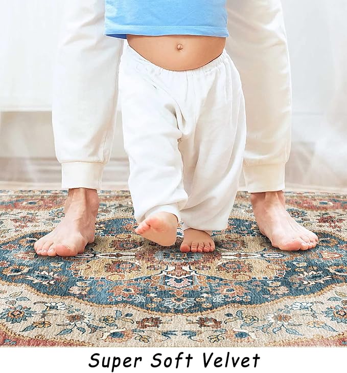 vivorug 6x9 Area Rug, Ultra-Soft Washable Rug for Living Room, Dinner Room, Bedroom, Non-Slip Vintage Beige Rug, Indoor Carpet Large Area Rug