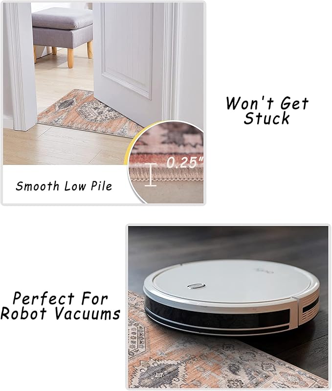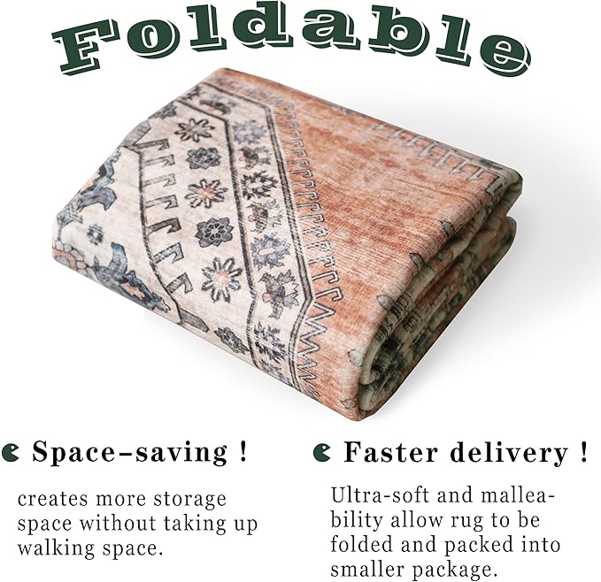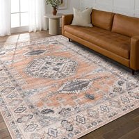 vivorug 5x7 Area Rugs - Ultra-Thin Washable Rug with Non-Slip Backing, Ideal for Living Room, Bedroom, Dining Room Indoor - Vintage Medallion, Easy Clean, Durable, Low Pile Rug Orange