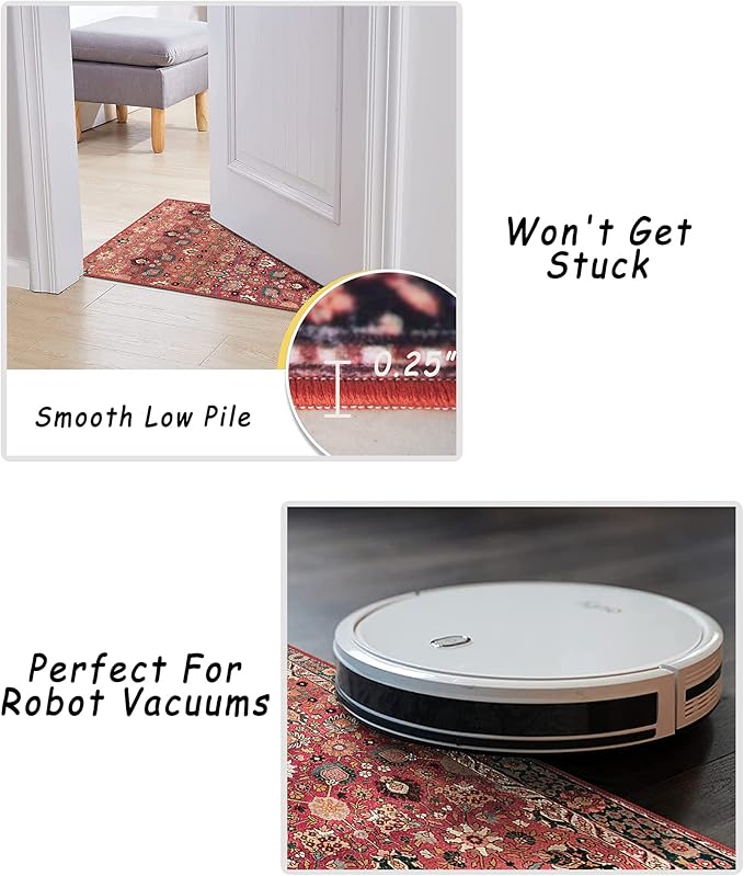 vivorug Runners for Hallways 2'x7', Non Slip Washable Rug, Carpet Runner for Kitchen Laundry Room Bedroom, Ultra Soft Rug Runner with Rubber Backing, Cherry Red/Spice