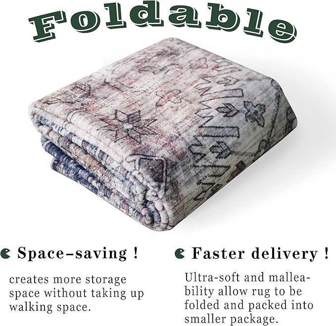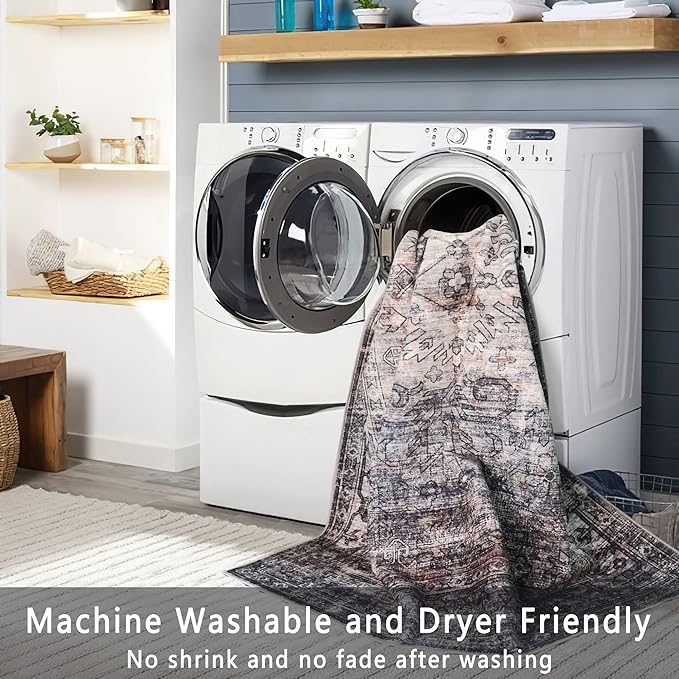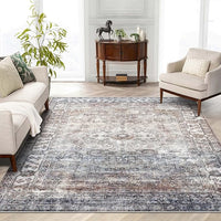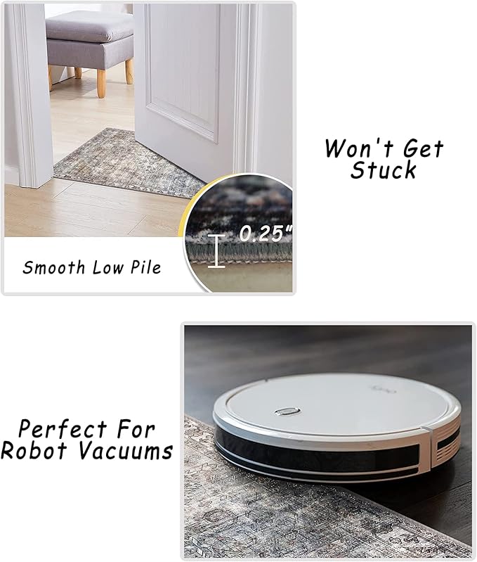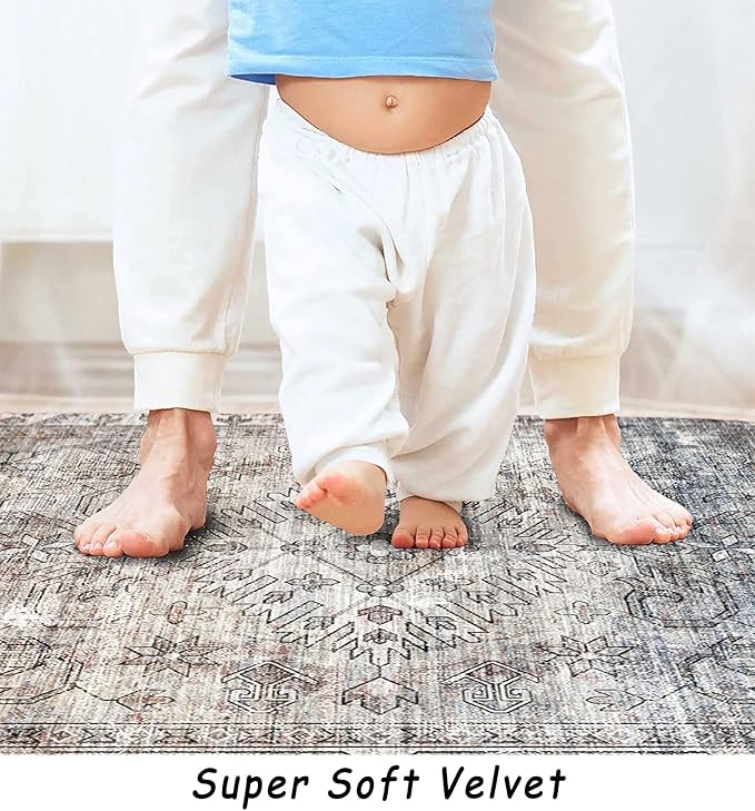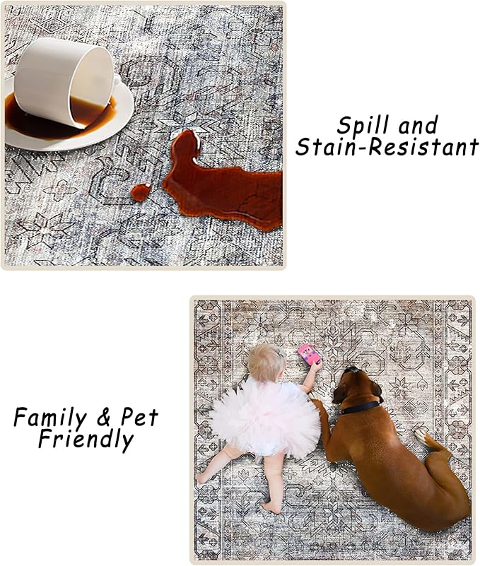 vivorug 8x10 Area Rugs - Ultra-Thin Washable Rug with Non-Slip Backing, Ideal for Living Room, Bedroom, Kitchen Floor Carpet - Vintage Style, Easy Clean, Durable, Low Pile Rug (Taupe/Stone)
