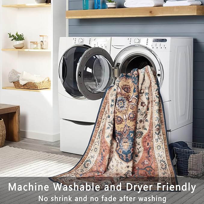 vivorug 5x7 Area Rugs - Ultra-Thin Washable Rug with Non-Slip Backing, Ideal for Living Room, Bedroom, Kitchen Floor Carpet - Vintage Style, Easy Clean, Durable, Low Pile Rug Beige