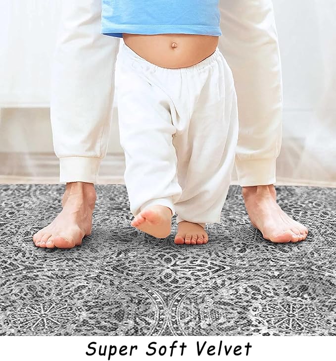 vivorug 5x7 Area Rugs - Ultra-Thin Washable Rug with Non-Slip Backing, Ideal for Living Room, Bedroom, Kitchen Floor Carpet - Vintage Medallion, Easy Clean, Durable, Grey