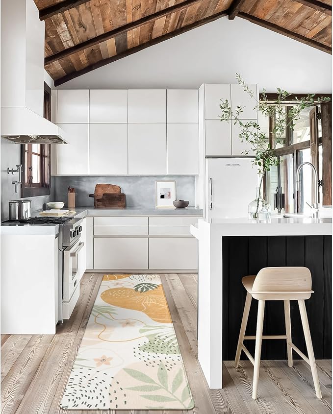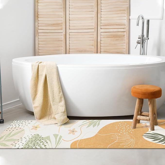 Lahome Boho Long Bathroom Rugs - 2x7 Rug Lightweight Washable Non-Slip Runner Rugs for Bedroom Throw Soft Bath Mat Runner, Taupe Botanical Print Indoor Carpet Runner for Entryway Hallway Kitchen
