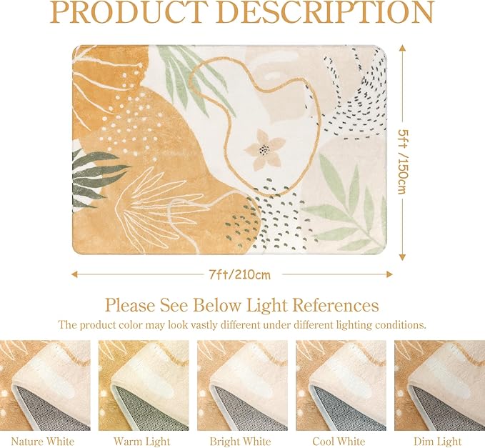 Lahome Washable Area Rug for Living Room - 5x7 Rug for Classroom Throw Non-Slip Soft Rugs for Bedroom Aesthetic, Boho Taupe Botanical Print Indoor Capet for Kids Nursery Dorm Entryway Dining Room