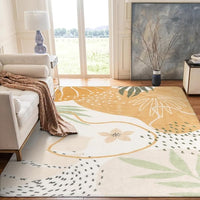 Lahome Boho Area Rugs for Living Room 9x12 - Washable Non-Slip Large Rug for Dining Room, Ultra-Thin Neutral Taupe Botanical Print Soft Carpet for Bedroom Nursery