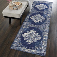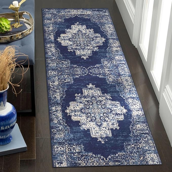 vivorug Runner Rug 2'x8' Machine Washable Non-Slip Runners for Hallways Kitchen Entryway Laundry Room Vintage-Inspired Carpet Hallway Runner Navy Blue