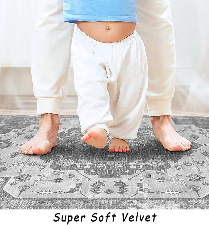 vivorug Runner Rug 2'x8' Vintage Washable Non-Slip Runners for Hallways Kitchen Entryway Laundry Room Carpet Hallway Runner Grey Floral