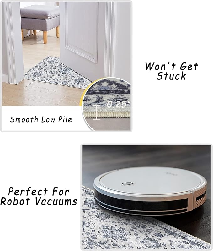 vivorug 6x9 Rug, Stain Resistant Washable Rug for Living Room, Floral Area Rug Vintage Inspired (Ivory/Blue, 6'x9')