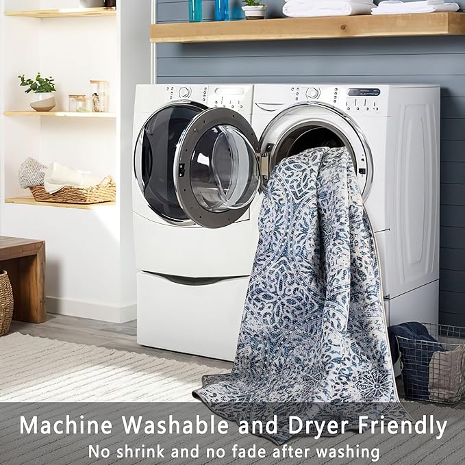 vivorug 3x5 Rug, Small Area Rug for Living Room, Bedroom, Kitchen, Machine Washable Non-Slip Throw Rug, Vintage Medallion Carpet for Entryway Nursery Coffee Table - Durable (Blue)