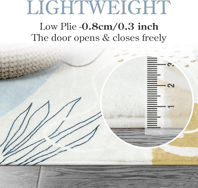 Lahome Boho Rug Runner - 2x4 Area Rug Non-Slip Washable Soft Bathroom Runner Rug Small Throw Long Bath Rug Blue Kitchen Runner, Botanical Print Foor Mats Runner Rug for Bedroom Hallway Laundry Room