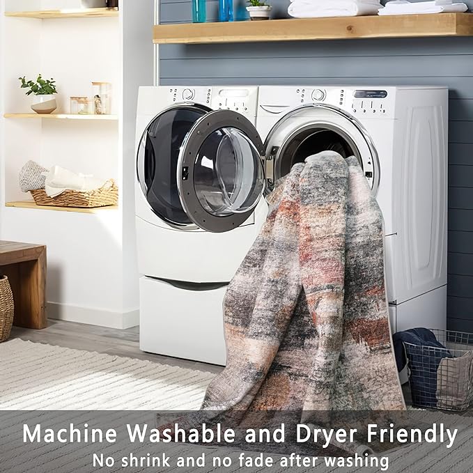 vivorug Grey 9x12 Area Rugs for Living Room, Non Slip Machine Washable Modern Abstract Rug, Ultra-Thin Lightweight Large Area Rug Carpet for Bedroom, Dining Room, Low Pile