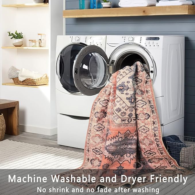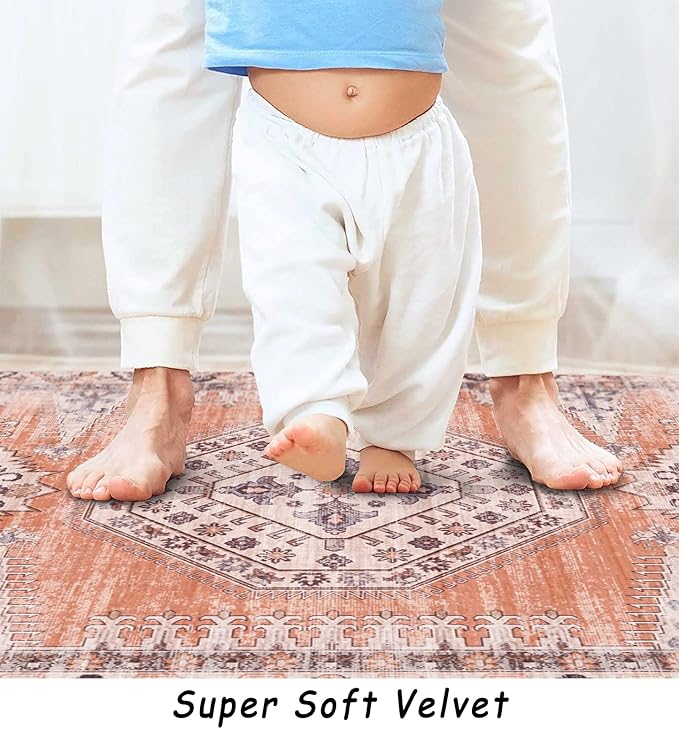 vivorug Runner Rug 2'x8' Vintage Washable Non-Slip Runners for Hallways Kitchen Entryway Laundry Room Carpet Hallway Runner Orange