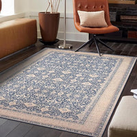 vivorug 3x5 Rug, Small Area Rug for Living Room, Bedroom, Kitchen, Machine Washable Non-Slip Throw Rug, Vintage Floral Carpet for Entryway Nursery Dinner Room - Durable (Blue)