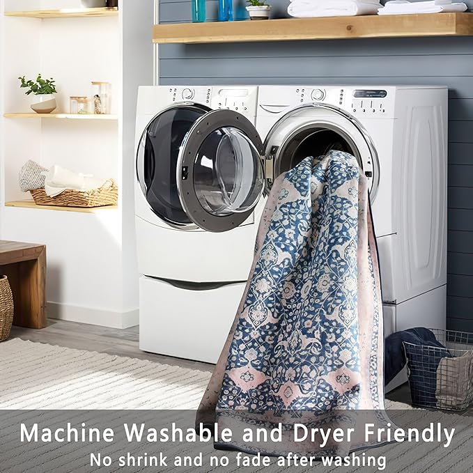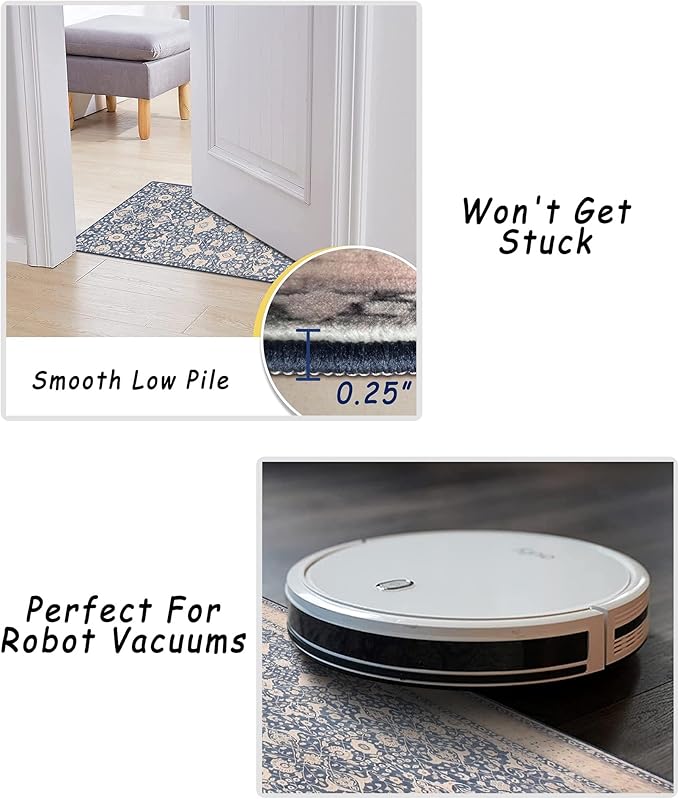 vivorug 4x6 Rug, Small Area Rug for Living Room, Bedroom, Kitchen, Machine Washable Non-Slip Throw Rug, Vintage Floral Carpet for Entryway Nursery Dinner Room - Durable (Blue)