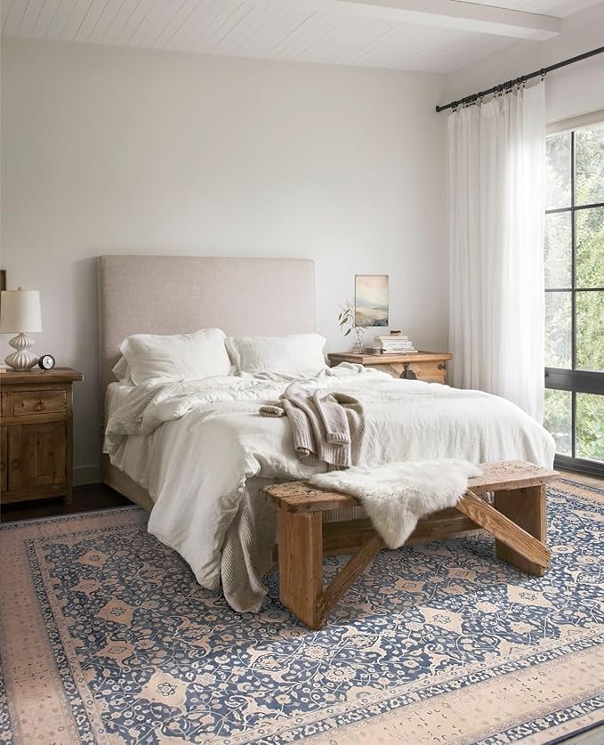 vivorug 6x9 Area Rug, Ultra-Soft Washable Rug for Living Room, Dinner Room, Bedroom, Non-Slip Vintage Inspired Blue Rug, Indoor Carpet Large Area Rug