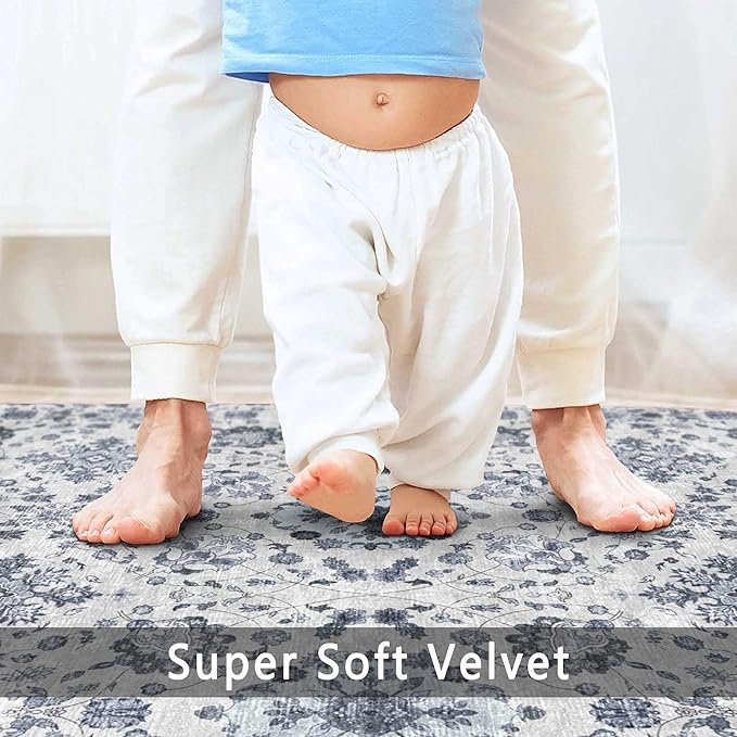 vivorug Runner Rug 2'x8' Vintage Washable Non-Slip Runners for Hallways Kitchen Entryway Laundry Room Carpet Hallway Runner Ivory/Blue
