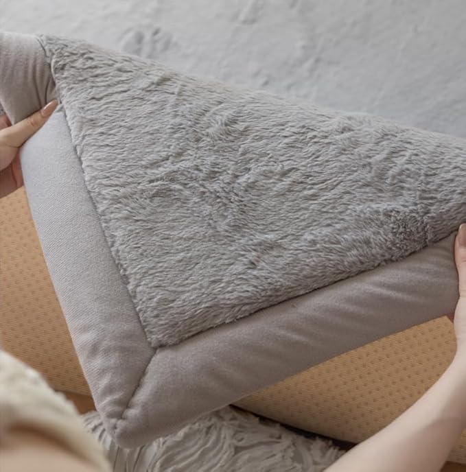 Loartee Faux Rabbit Fur Rug - 1.18" Thick Soft Fluffy Area Rug, Non-Slip Memory Foam Crawling Mat, Light Gray, 78"x118"