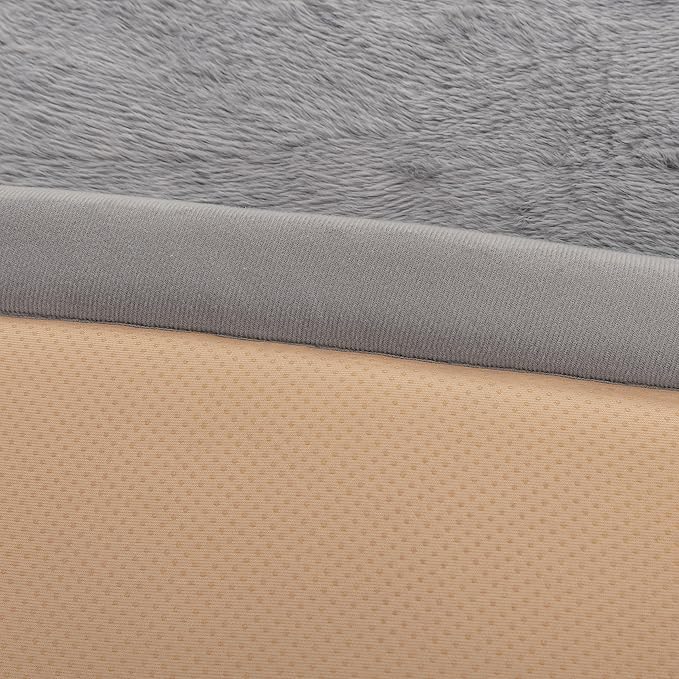 Loartee Faux Rabbit Fur Rug - 1.18" Thick Soft Fluffy Area Rug, Non-Slip Memory Foam Crawling Mat, Light Gray, 59"x78"