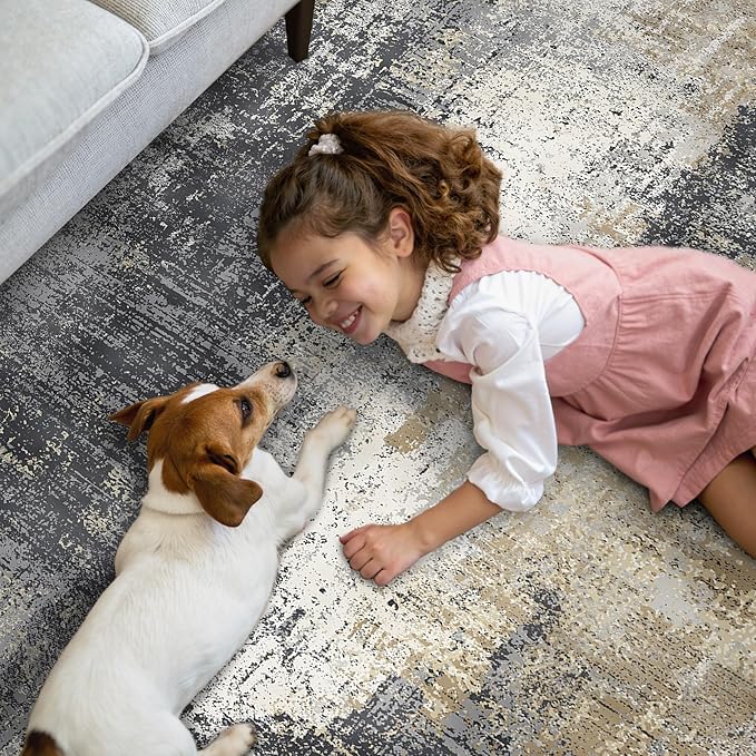 GENIMO Washable Area Rugs for Living Room Bedroom, 8x10 Modern Abstract Non Slip Rug, Low Pile Soft Contemporary Indoor Floor Carpet Cover for Dining Room Kitchen, Livid