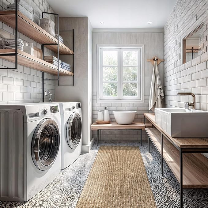 Easy Jute Rugs 2x7 Natural Color Living Room Indoor Outdoor Runner Rug for Farmhouse Patio and Kitchen Rug High Traffic Washable Easy to Clean Solid Boho Woven Design Outside Carpet (2 x 7)