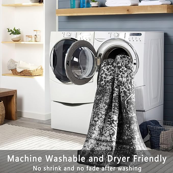 vivorug Runner Rug 2'x7' Vintage Washable Non-Slip Runners for Hallways Kitchen Entryway Laundry Room Carpet Hallway Runner, Black and White Rug